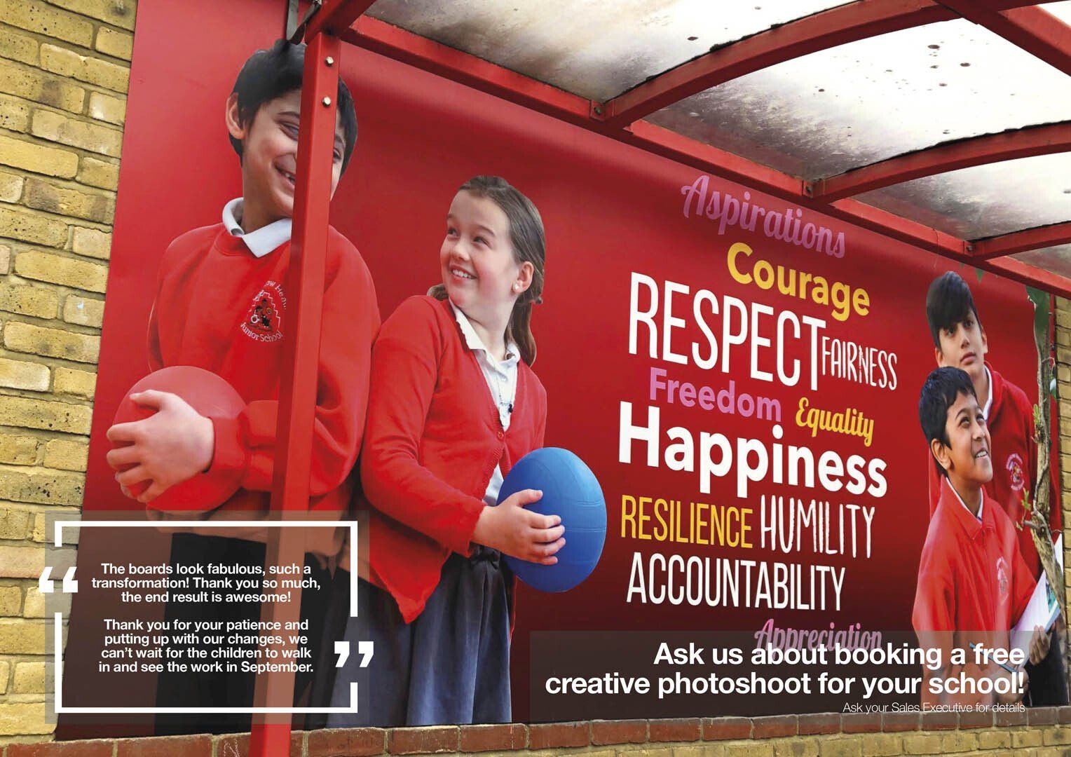 The brief: Create large displays and new signage to freshen up the school grounds and corridors.